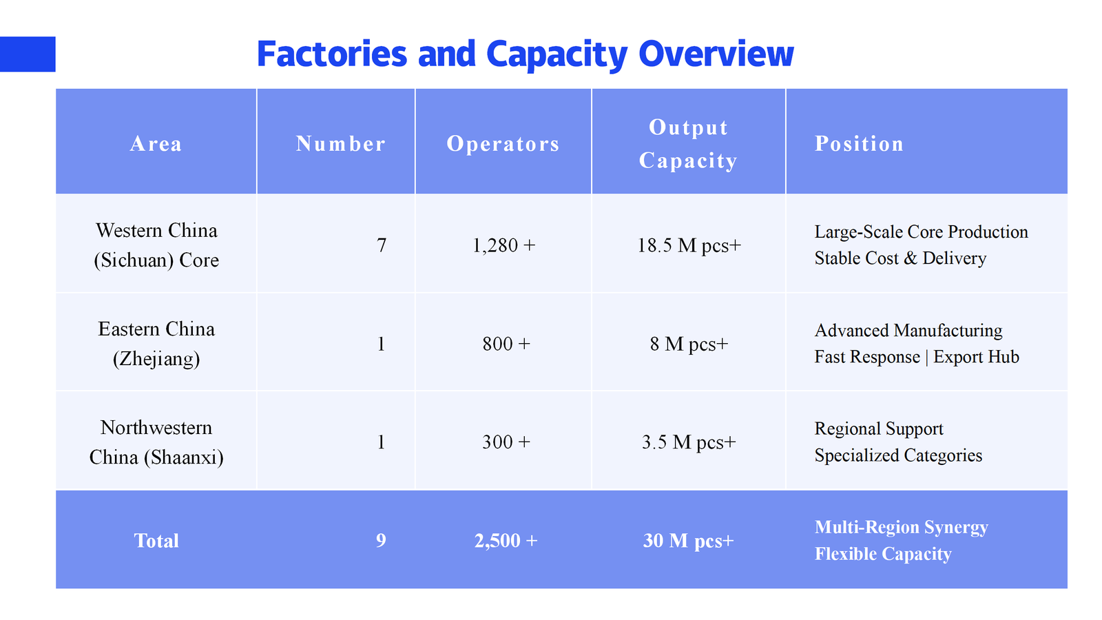 Through an integrated manufacturing and trading operating model, we unify and coordinate apparel manufacturing, supply chain collaboration, and international trade processes, enabling structured process management and stable, controllable production capacity.